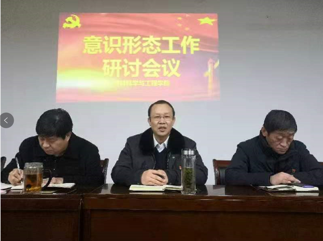 12月18日下午,材料学院在ES409召开意识形态工作研讨会,学院党委委员、科级以上干部、全体辅导员参加会议,人文与社会科学学院党委书记、党委第二巡察组副组长胡留现列席会议。