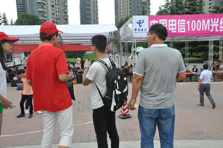 9月8日至11日,我们为期三天的迎新活动在九九广场进行,今年的迎新工作进行的很顺利,取得了圆满的成功。其中离不开各个迎新小组的配合,从接引小组、报道小组、运送小组到宿舍分配小组还有全程坐镇的指导小组,各小组各司其职配合得很好。其中负责接引小组的同学,在三天的时间里,用他们忙碌的身影构成了一道亮丽的风景线。