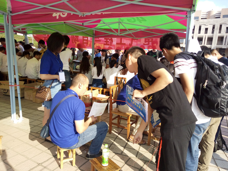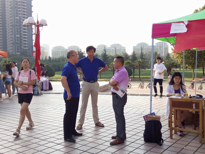 9月8日至11日,我们为期三天的迎新活动在九九广场进行,今年的迎新工作进行的很顺利,取得了圆满的成功。其中离不开各个迎新小组的配合,从接引小组、报道小组、运送小组到宿舍分配小组还有全程坐镇的指导小组,各小组各司其职配合得很好。我们党委副书记高进旗、团委副书记张斐然、学工办主任张垓以及16级各专业辅导员老师全程坐镇大本营,进行工作指导,迎新工作圆满结束,身着蓝色工作服的老师们成为小石榴们心中最美丽的烙印。