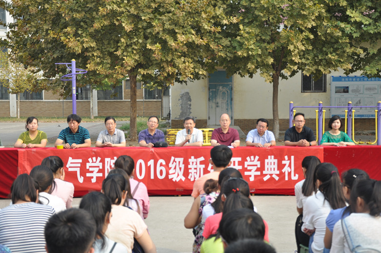 9月12日,我们在璁苑篮球场举办了新生开学典礼。我们院长葛运旺,党委书记朱鸿霆,副院长李建月,党委副书记高进旗,副院长陈文清,团委副书记张斐然,学工办主任张垓,电气辅导员李曼老师和电科辅导员曲振峰老师出席了开学典礼,我们16级全体新生参加了此次开学典礼。