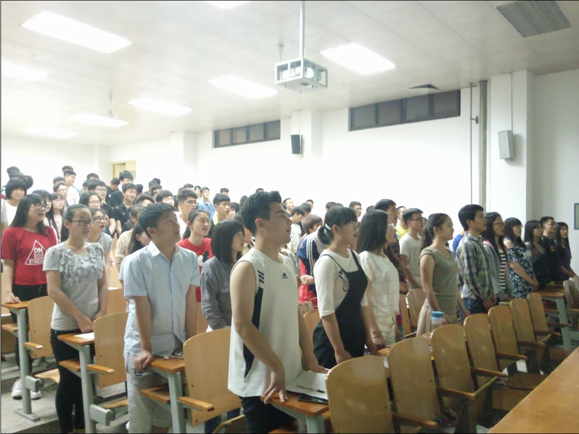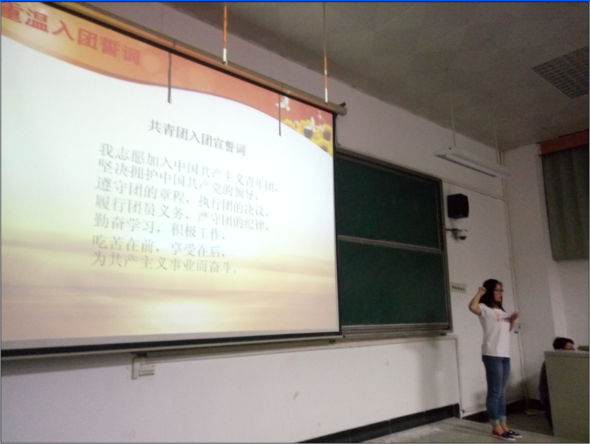 为了隆重纪念“五四”运动97周年,弘扬“五四”精神,营造良好的校园文化氛围,同时大力加强学生的思想道德建设、提高学生的综合素质、促进学生健康成长。由校团委主办、校学生会组织部承办的纪念五四活动于5月4日晚在学校全面展开。活动开始前,我们团委副书记简单介绍了五四青年节的历史渊源,并和大家分享了一些共青团的团歌、团史。接着在宣誓人的带领下全体人员起立共同举起右手宣誓,重温共青团入团誓言。团委副书记也跟同大家一起宣誓,慷慨激昂的入团誓词让大家燃起了青年斗志并为身为一名共青团员而骄傲。庄重的宣誓过后,大家齐唱团歌,在整齐洪亮的歌声中大家感受共青团的亲切和光荣,本次活动也渐渐拉上了帷幕。