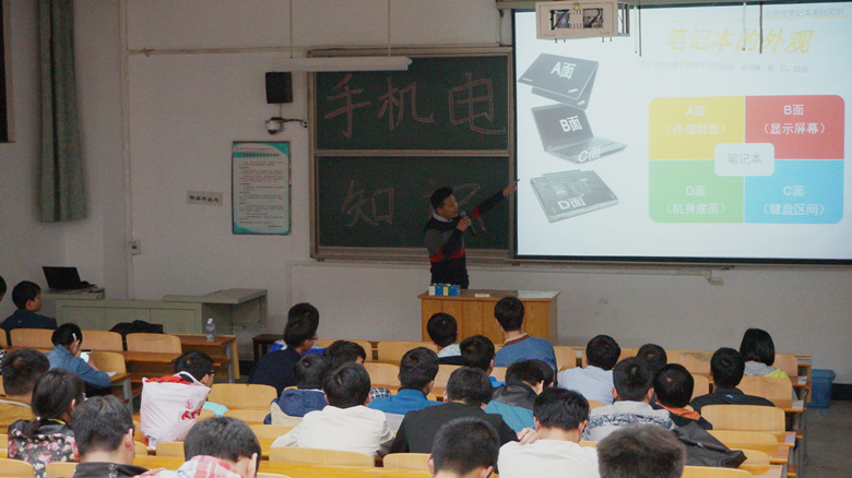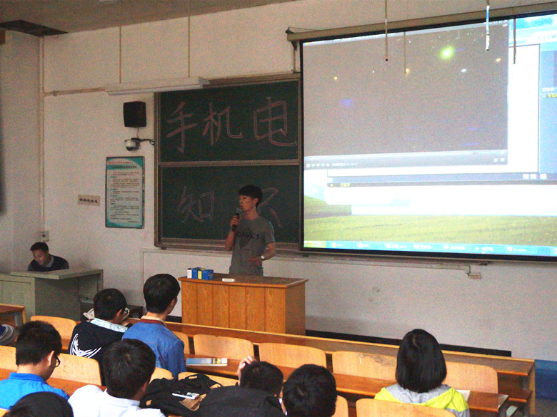 4月9日下午,电气工程与自动化学院家电维修协会联合青协在教学D楼D3阶梯教室举办了手机电脑基础知识讲座。本次讲座邀请了阿蒲商城总经理靳旭阳作为主讲人,我们家电维修协会成员及青协成员共80余人参加了座谈会。