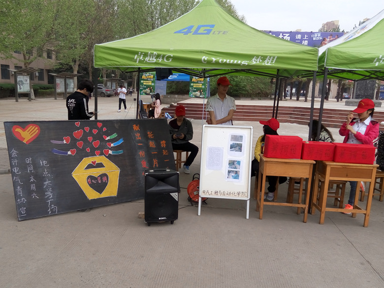 4月9、10日,电气工程与自动化学院青协联合会计学院青协在太学广场联合举办了为期两天的“爱心募捐”活动。我们青协以及会计青协30余名志愿者参加了本次活动。
