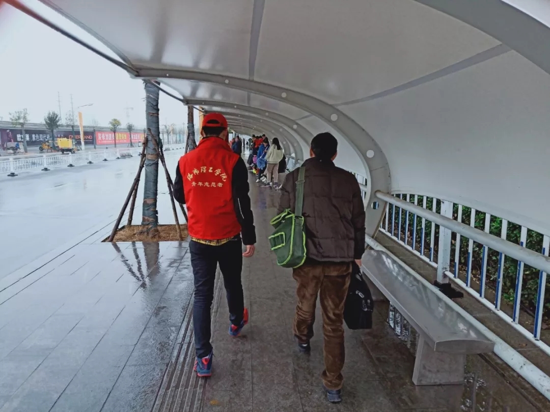 进站口的志愿者耐心地告诉乘客出发时间和检票时间,帮助乘客提行李,维持站口秩序;出站口的志愿者帮助乘客将票递进机器便于出站;售票厅的志愿者负责指导乘客如何购票和取票;公交站的志愿者耐心地为来往的乘客引路,活动有条不紊地进行着。一张张充满笑容的面孔、一句句“您好,请问需要什么帮助吗”的贴心话语,舒展了不少返乡人们原本皱着的眉头。