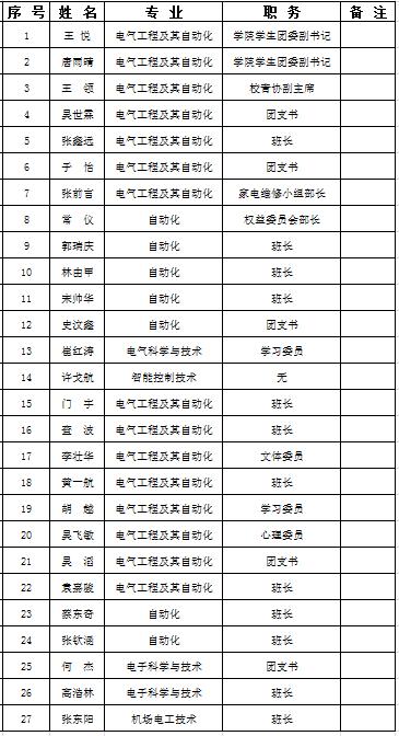 电气工程与自动化学院2018级新生辅导员助理名单公示