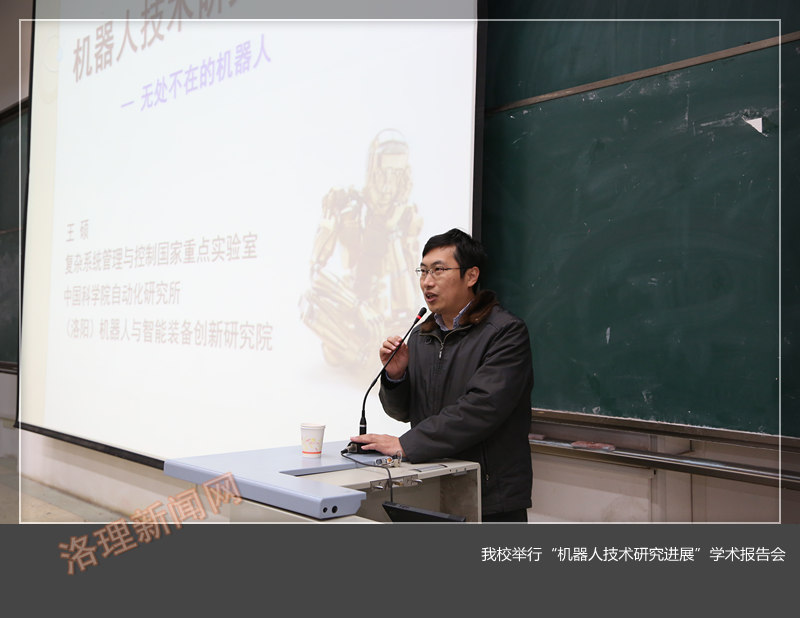 1月6日下午,中国科学院自动化研究所研究员、中国自动化学会青年工作委员会秘书长、博士生导师王硕教授受邀在王城校区公共教学楼AW202做了题为“机器人技术研究进展”的专题报告。 王硕教授对仿生机器人研究进展,多机器人控制系统及其控制算法,网络机器人技术及水下传感器网络研究进展做了精彩的报告。近300名师生汇集一堂,聆听了王硕教授的精彩报告,广大师生开阔了视野,受到了良好的启迪。随后王硕教授一行参观了工程训练中心创新室,并与机器人协会师生进行了深入的交流。