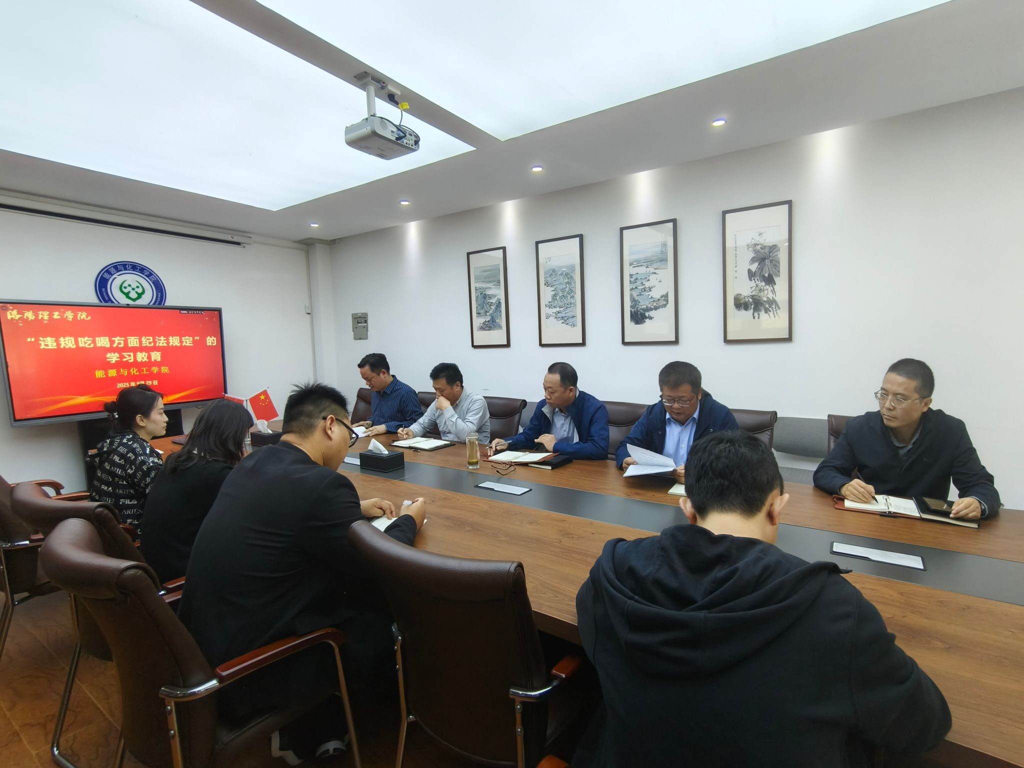 9月30日上午,能源与化工学院召开“违规吃喝方面纪法规定”专题学习会暨党委理论学习中心组(扩大)会议,学院领导班子成员、纪委委员及全体学工人员参会。会议重点学习了习近平总书记近期重要讲话和指示批示精神,集中研讨了“违规吃喝方面纪法规定”的核心内容。