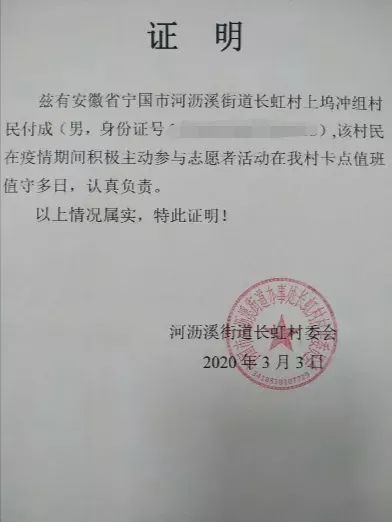 面对“新型冠状病毒”的严峻疫情,该生积极响应村委干部号的召并立即行动起来,积极投身新型冠状病毒感染肺炎疫情防控工作,做到不信谣,不传谣,依靠政府,众志成城,共渡难关,坚决打赢疫情阻击战。