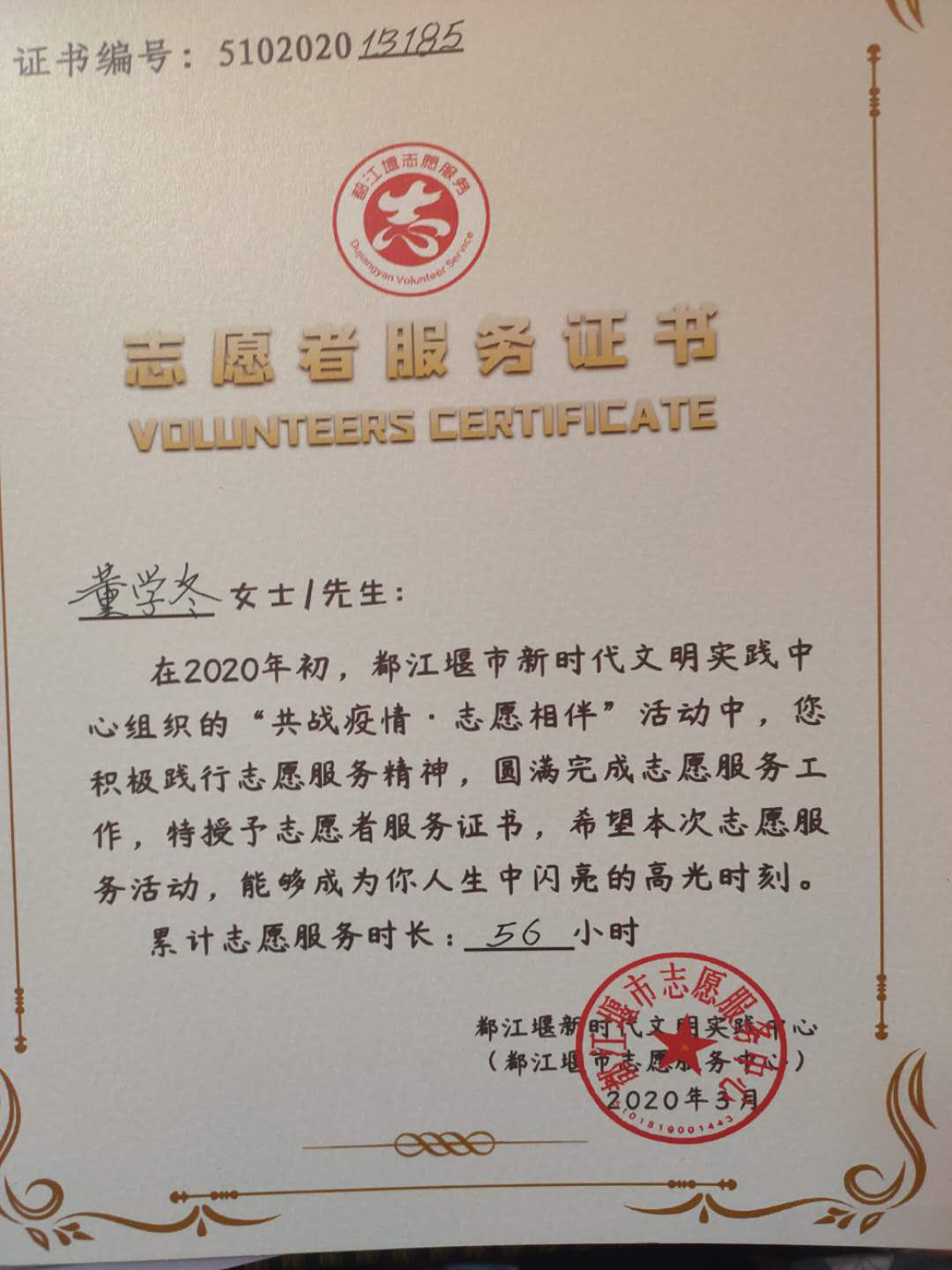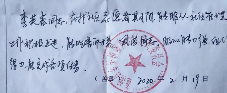 在此次新冠肺炎疫情防控中,她积极响应当地号召,于2020年1月29日至2月23日跟随村里的学生党员共同加入到本村抗疫工作中。