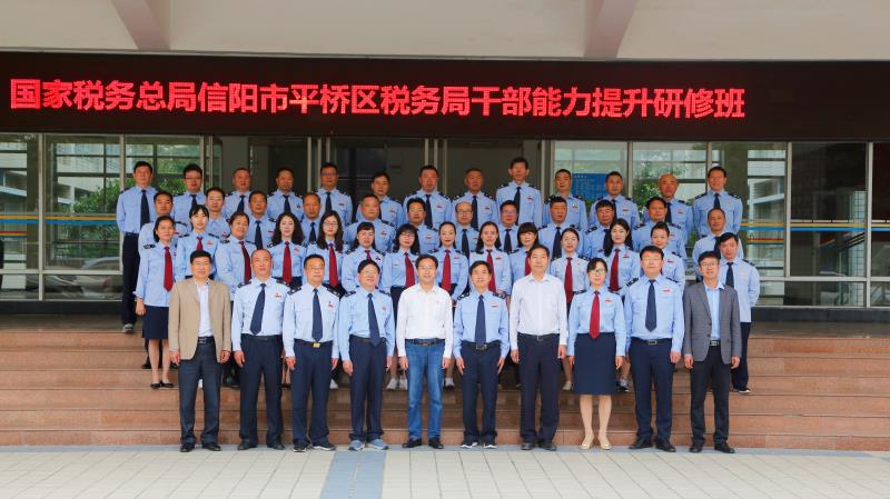 国家税务总局信阳市平桥区税务局干部能力提升研修培训班在我们举办。国家税务总局信阳市平桥区税务局局长张书众,副局长张则银,我们副校长韩振英出席开班仪式。