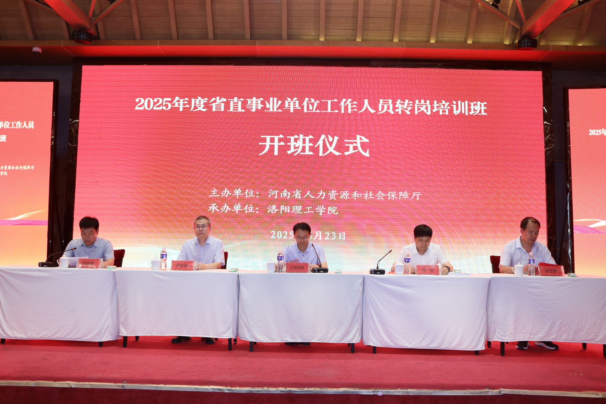 为学习贯彻习近平新时代中国特色社会主义思想和党的二十届三中全会精神,提升省直事业单位工作人员工作适应性和素质能力,推进事业单位高质量发展。6月23日,由河南省人力资源和社会保障厅主办,洛阳理工学院承办的“2025年河南省省直事业单位工作人员转岗培训班”在洛阳顺利开班,河南省人力资源和社会保障厅事业单位管理处副处长高伍、伟德betvlctor体育官网副校长上官林建、伟德betvlctor体育官网人事处处长李传锋、伟德betvlctor体育官网继续教育学院直属党支部书记柴玉强以及来自河南省20多家省直单位的120名转岗人员参加了开班仪式。开班仪式由伟德betvlctor体育官网继续教育学院院长苗国强主持。