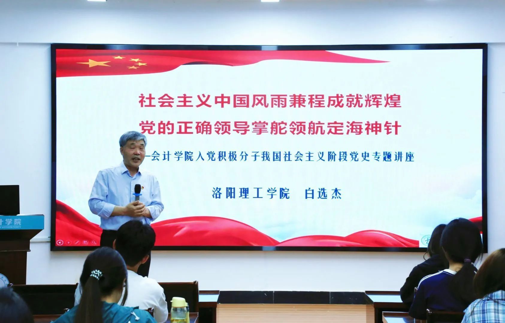 为加强入党积极分子对中国共产党的性质、最高理想和宗旨的了解,会计学院于4月22日在教学楼D309开展入党积极分子培训班党课培训第一课。本次活动由白选杰主讲,会计学院第34期入党积极分子全体学员参加。