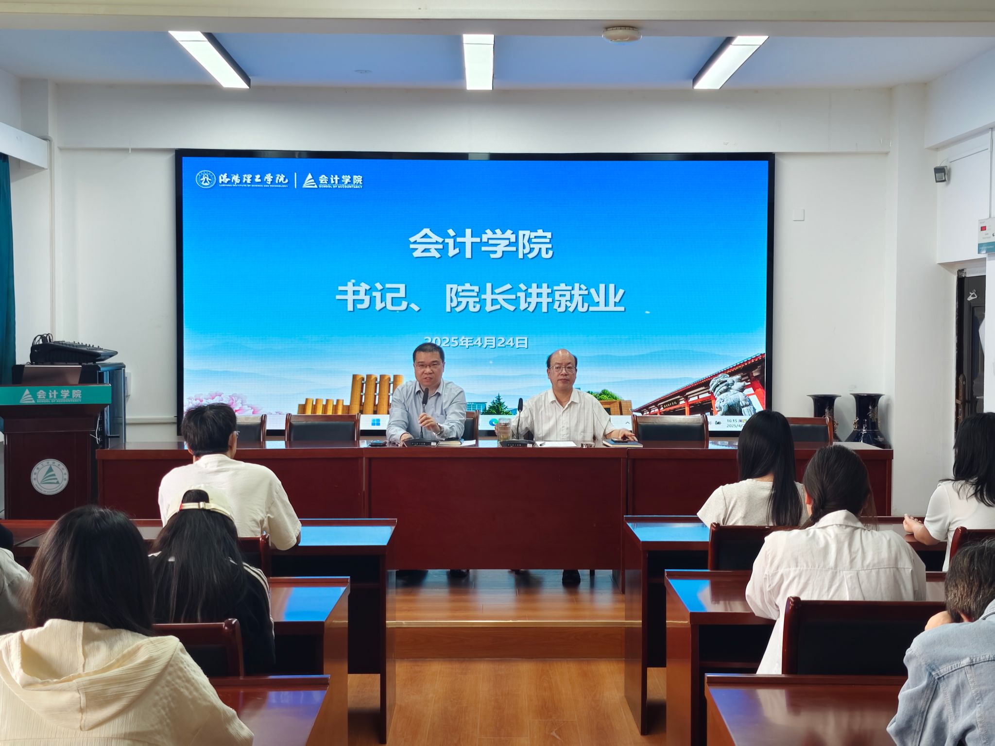 宣讲结束后,书记和院长对同学们进行“一对一”谈话指导。此次主题活动打消了毕业生们的诸多疑虑,坚定了就业信心。学院将全力做好就业服务工作,为同学们提供坚实的支持与保障,促进2025届毕业生更加充分更高质量就业。