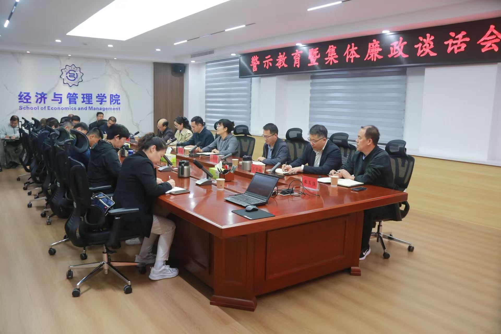 10月11日下午,副校长冯超主持召开分管部门和联系单位警示教育暨集体廉政谈话会,我们副处级以上党政领导干部参加会议,会议在经济与管理学院B207会议室举行。