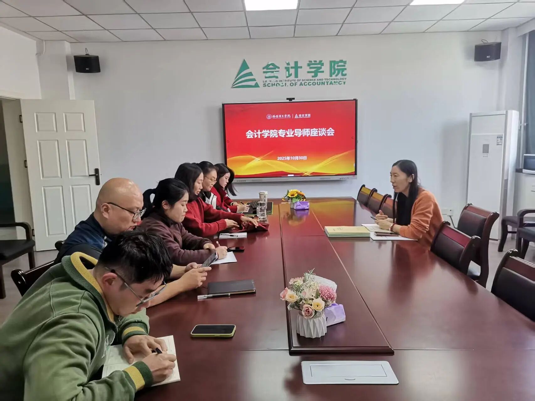 为积极响应学校本科生学业导师制度落实情况抽查工作要求,切实提升学院学业导师工作质量,10 月 30 日,会计学院召开专业导师和分系学业导师座谈会座谈会。学院院长马腾、副院长吕玉辉、蔡洁、张国柱分别到联系各系参加座谈,围绕学业导师工作中的实践经验、现实困难及改进方向展开深入交流。