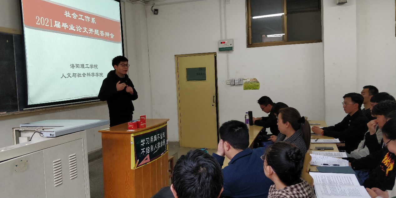 本次答辩,汉语言文学专业在王城校区公共教学楼进行,新闻学专业和社会工作专业在开元校区教学楼A楼进行。开题答辩过程中,首先由学生陈述论文研究思路,研究内容和研究方法;然后教师根据学生的陈述和开题报告进行提问,指出研究设计中的问题与不足,提出改善建议;答辩后学生将和指导教师沟通进一步修改开题报告,并将开题报告上传至毕业论文指导系统。