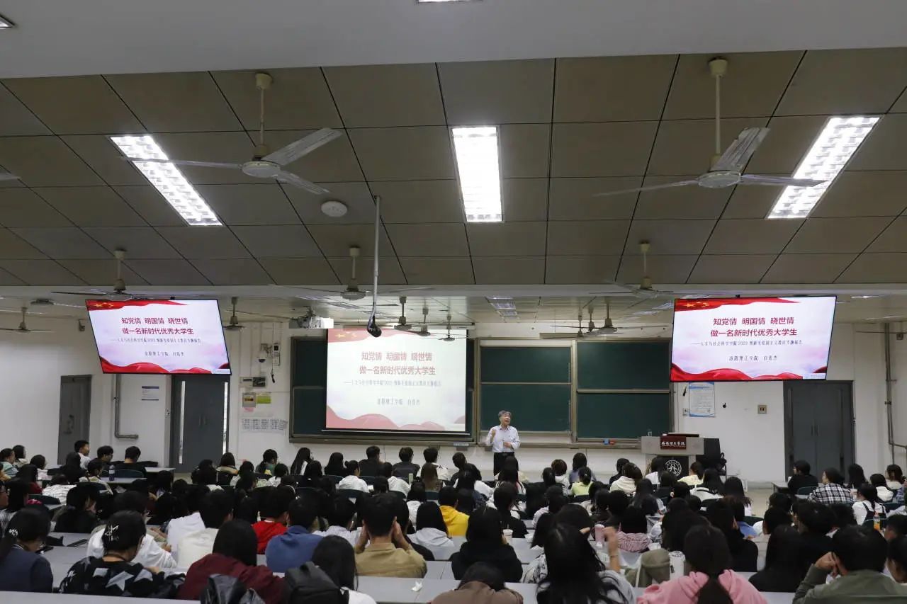 本次讲座以“知党情 明国情 晓世情,做一名新时代优秀大学生”为主题,讲座伊始,白选杰教授以新时代社会发展、当前世界经济政治形势变化、新时代中国特色社会主义发展机遇与挑战为切入点,从深入了解新时代的基本特征、深入了解中央组织部公布的最新党情、科学把握当前国际政治经济形势、科学把握当前国内政治经济形势等多个角度向同学们剖析了新时代社会发展形势与世界局势走向,同时希望同学们要厚植爱国主义情怀,心怀天下,志存高远,做一名有志气、骨气、底气的大学生。