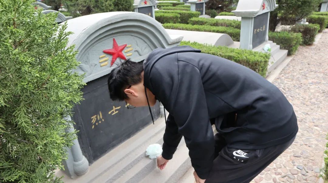 陵园内,庄严肃穆。同学们们庄重肃立,怀着沉重的心情瞻仰革命烈士墓碑、默哀、鞠躬,向革命烈士们表达崇高的敬意与哀思。