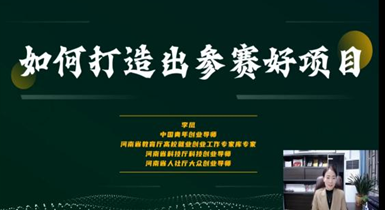 培训期间,李凤老师先总结了第八届“互联网+”大赛河南省取得的优秀成果并表示祝贺,又介绍了本届大赛总参赛人数及项目数量都已上万,再次凸显了“互联网+”大赛不断增强的影响力。紧接着,李老师以近两年大赛的金奖作品为切点,围绕“十个一”具体阐述了同学们应该如何组建一个好团队、如何利用学校与社会企业资源打造核心特色、如何更有针对性地发掘一个痛点问题,以及如何讲一个好故事、形成一个好模式、组织一场好路演等内容。李老师经验丰富,列举了很多参赛典型案例,大大促进了同学们对于“互联网+”  大赛的了解,她深入浅出,细致入微的讲解对于有意向参加创新创业类型大赛的同学具有极大帮助。最后李老师鼓励同学们应多多了解参与大学生创新创业比赛,提高个人的综合能力和团队合作精神,成为一位优秀的创新型人才。