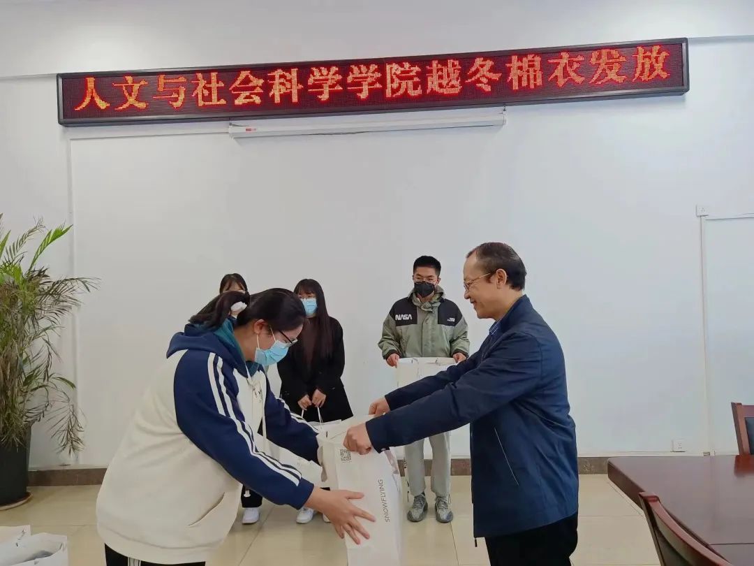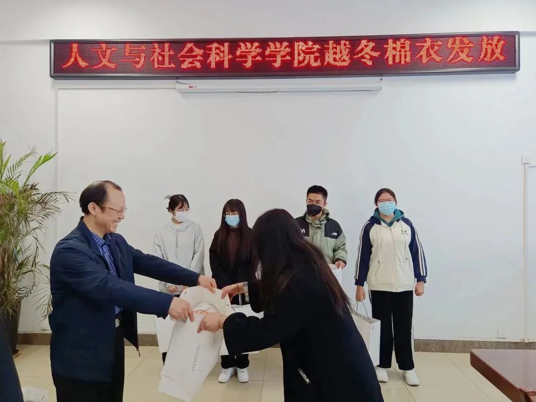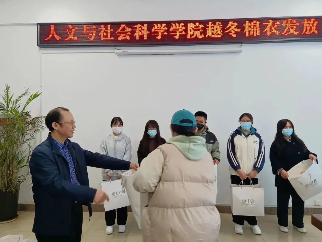 此次发放越冬棉衣活动不仅让同学们感受到心灵上的温暖,也实实在在地让同学们体会到人文与社会科学学院的关怀与呵护。