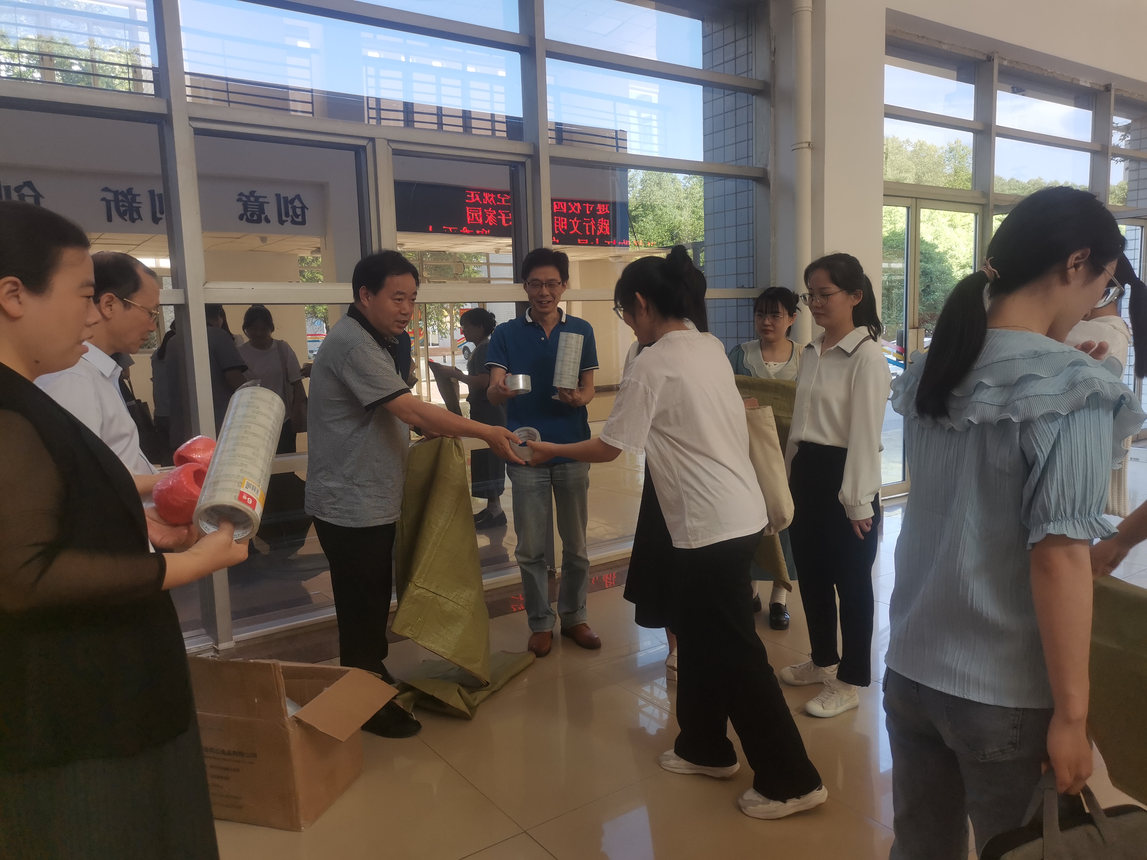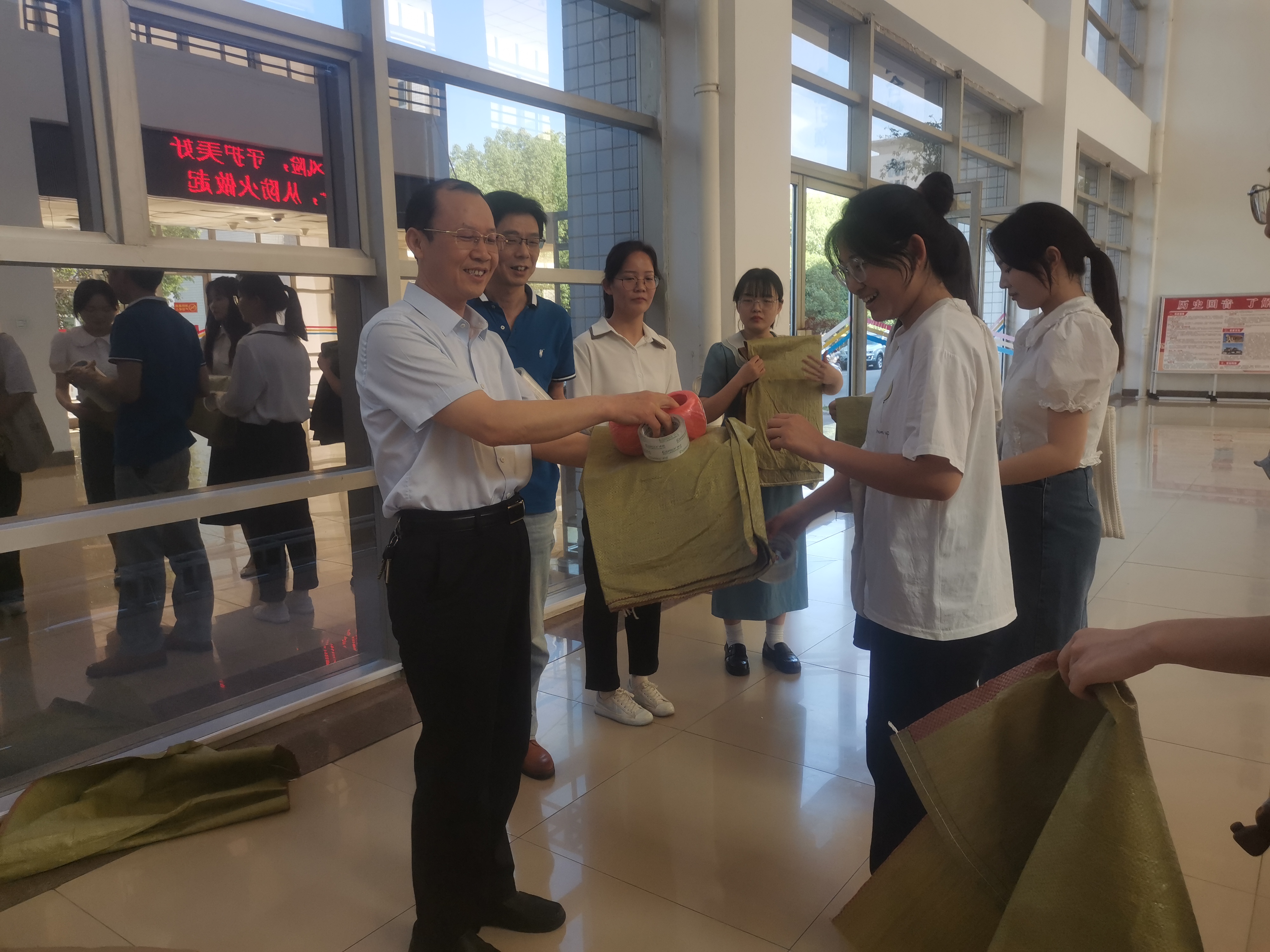5月28日,学院书记胡留现、院长扈耕田、副书记张正瑞、副院长张瑞玲一行来到B楼一楼大厅给毕业生们送去爱心福利。针对毕业生行李多打包难度大的问题,学院为每一个学生准备了打包袋、打包绳还有胶带等物品帮助学生顺利离校。