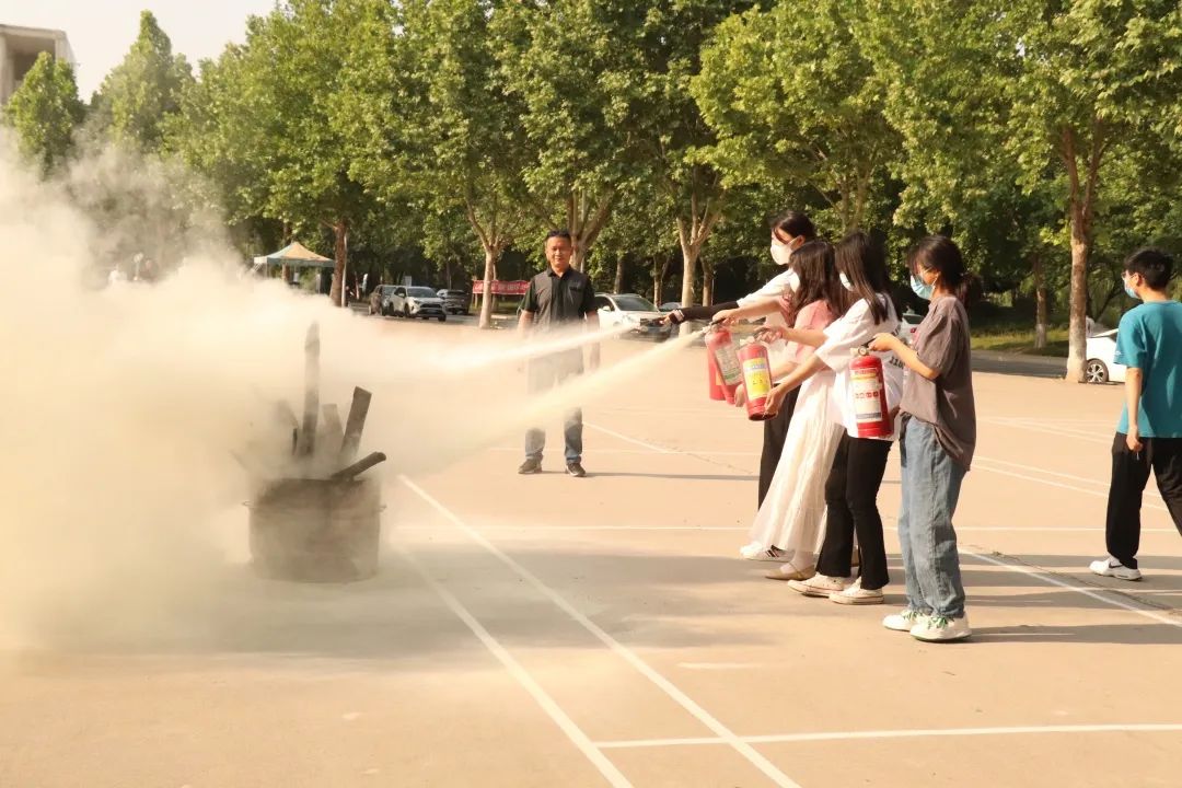 随着现场火堆的燃起,消防演练正式开始。同学们认真听讲和观摩,在消防科老师的指导下,同学们秩序井然,分批进行实际操作,按序进行了灭火器现场演练,亲自体验了现场灭火的过程,整个消防演练活动规范、有序、紧凑、高效。