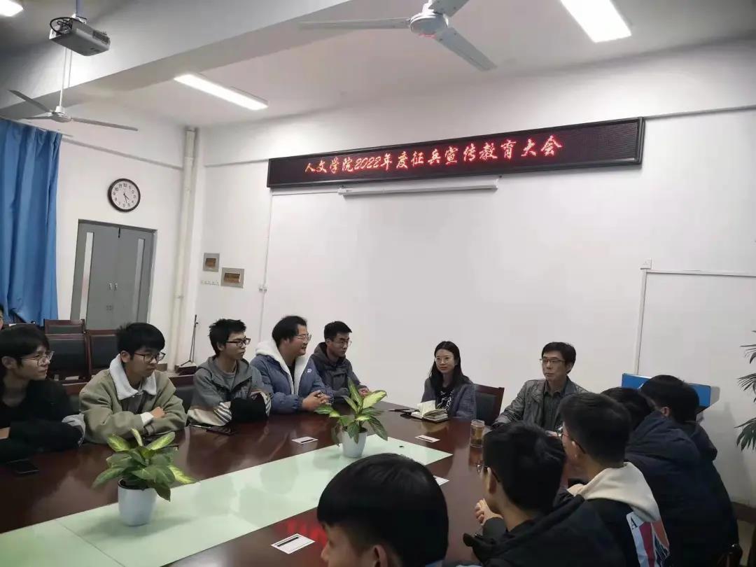 为加强征兵政策宣传,做好2022年大学生应征入伍工作,2021年12月6日下午16:10,人文与社会科学学院召开关于2022年大学生征兵教育宣传会。由党委副书记张正瑞、团委书记孙维艺担任主讲人,人文学院21级全体男生参加了此次大会。