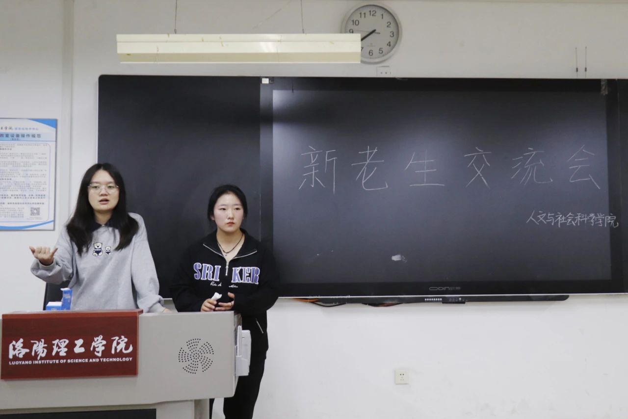 为帮助2023级新生更快地适应大学生活,明确个人方向,更好地融入洛理工大家庭,在大学校园中全面发展自我,2023年10月12日19点,人文与社会科学学院于A楼举办“遇见人文,扬帆起航”新老生交流会,22级汉语言文学专业常玉瑶、刘亚楠、刘子琪、谢珺楠、戴维、李欣妍,和新闻学专业王宇昊、程水菁、宋嘉仪、郑雅文、连婧如,文化遗产专业苏静雅、李羿熳参加此次交流会,向23级新生分享经验心得。