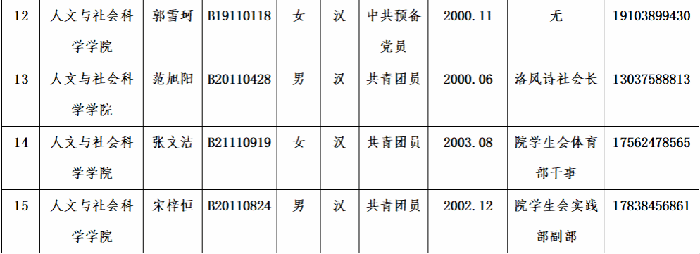 学生代表名单公示