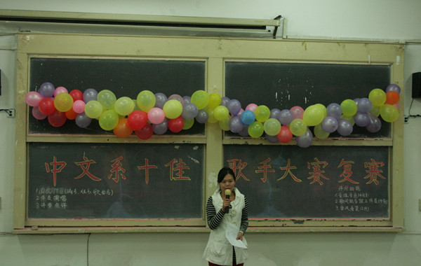 10月19日晚,中文系第六届十佳歌手大赛复赛在A1教室中举行。第六届团总支副书记刘晓阳、第四届系十佳歌手第二名闫明明、第五届院十佳歌手于晴、第五届系十佳歌手郭强及经管系艺术团团长张易担任比赛评委。