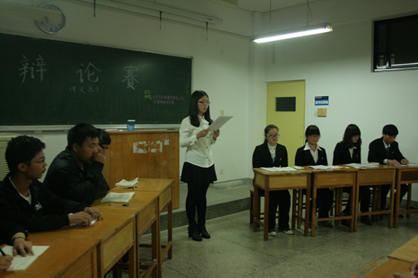 10月22日晚,中文系辩论赛初赛于教学楼C407、C409、C410、C412、C505、C510六个教室中顺利开赛。中文系学生会各部门部长担任比赛评委。