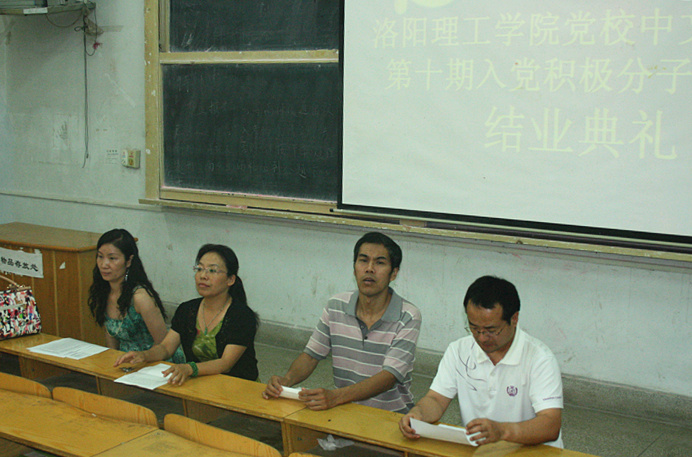 6月18日下午,我们党校中文系分校第十期入党积极分子培训班结业典礼在A2教室隆重举行。中文系党总支书记苑成存、党总支副书记张姝、团总支书记耿志强、培训班班主任蒋志琳出席该典礼,全体党课学员积极参加。典礼由团总支书记耿志强主持。
