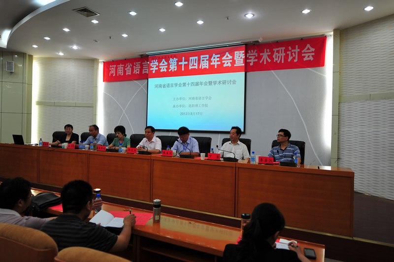 2013年8月17日上午,由中文系承办的河南省语言学会第十四届年会暨学术研讨会在我们学术报告厅开幕。伟德betvlctor体育官网副院长邱天河教授,河南省语言学会会长、河南大学语言研究所所长张生汉教授,南阳师范学院工会主席丁全教授,河南师范大学崔应贤教授,信阳师范学院文学院陈伟琳教授,解放外语学院李宗江教授,我们中文系主任王彩琴教授等专家领导出席了研讨会开幕式。