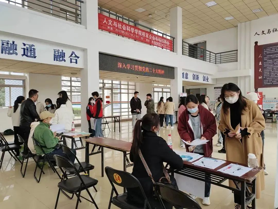 为进一步促进我们2023届毕业生就业,提高毕业生的毕业质量,为企业与学生提供一个面对面交流的平台,2023年3月21日上午9点,人文与社会科学学院往届优秀创业校友受邀于B楼一楼大厅举办以“人文与你 共创未来”为主题的人文学院专场双选会。