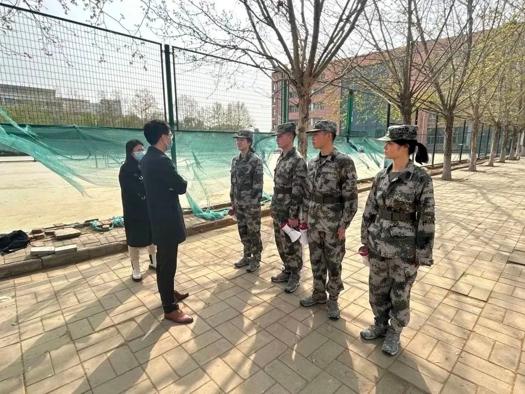 2023年3月26日,人文与社会科学学院军事训练正式开营。伴随着和煦的春风,沐浴着温暖的阳光,军训在西操篮球场拉开帷幕。人文与社会科学学院党委副书记张正瑞、学工办主任丁惠灵、团委副书记兼22级辅导员孙维艺参加了本次开营仪式。