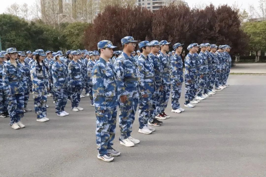同学们身着整齐的军装,精神抖擞,斗志激昂,列队集结。他们将进行为期两周的军事训练,学习军体拳、队列会操、分列式等各项学习训练内容。