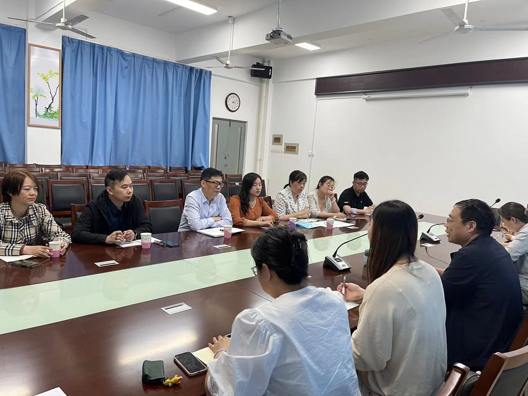 座谈会上,新闻系全体教师和调研团成员,就新创栏目《党旗颂》《奇域县区》《跟着美食去旅行》三个栏目的策划、制作、运营等相关业务问题进行了深入探讨。黄主任很认可新闻系教师对于当下新媒体用户特点的分析,对新媒体渠道运营和内容二创的建议,给他们的节目制作提供了很多思路和想法。双方还就未来的业务合作和学生培养初步达成了合作意向,为新闻系下一步的发展提供了更广阔的舞台。