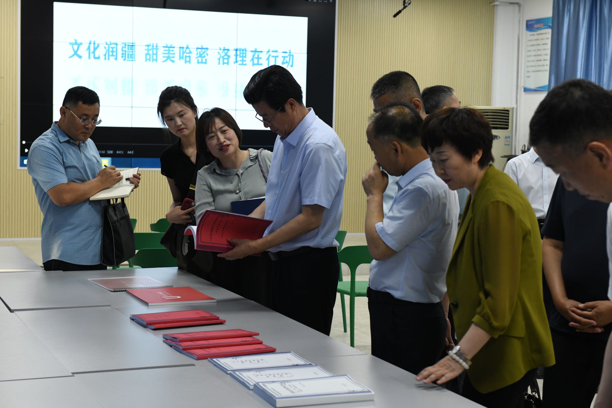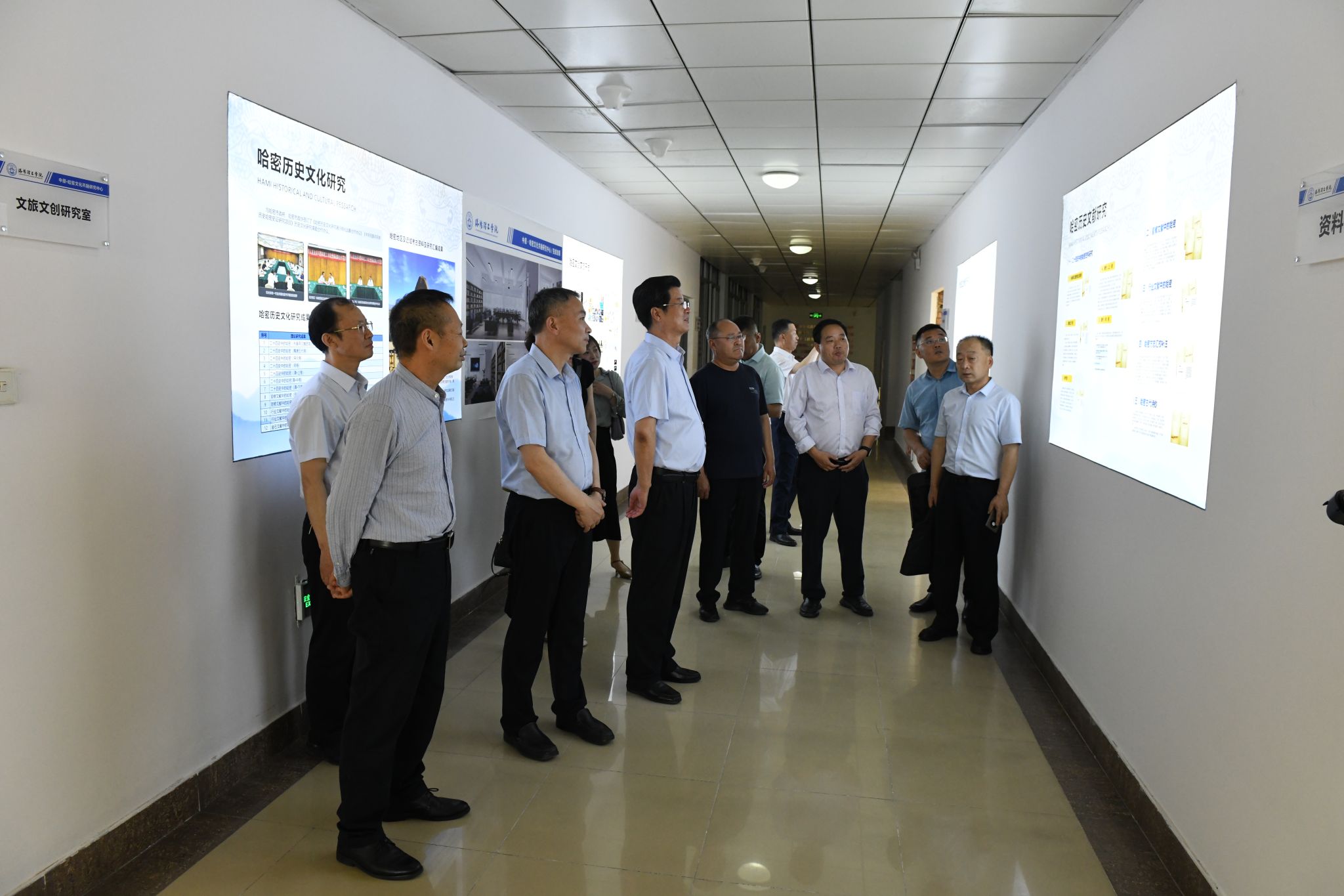 王毅一行首先调研了《中华民族共同体历史哈密史证研究》项目的进展情况,参观哈密历史文献研究成果,并观看了中原哈密文化交流交往专题视频作品,学院院长扈耕田介绍了项目进展及推进计划。随后,考察团参观了在建的中原—哈密文化共融研究中心。研究中心依托伟德betvlctor体育官网重点学科、科研团队和科研平台,旨在通过学术研究、学术交流、协同育人,深入发掘整理哈密历史文化、中原—哈密的文化交流与共融,促进哈密文旅文创发展,力求建设成为集咨政建言、哈密研究、应用转化、推广交流等功能于一体的开放性研究平台基地。研究中心下设办公室、历史文献、文化遗产、文创文旅三个研究室、资料室,主要发挥科学研究、学术交流、文化展示与人才培养功能。学校将依托研究中心,进一步推进与哈密的全方位交流合作,持续打造校地合作的典范。