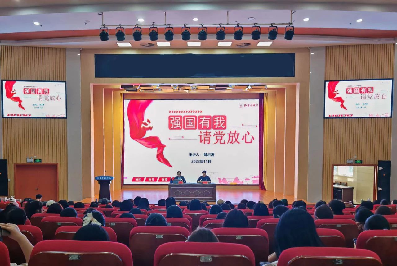 青年强,则国家强。党的二十大报告指出,当代中国青年生逢其时,施展才干的舞台无比广阔,实现梦想的前景无比光明。为增强同学们对中国特色社会主义思想的信念,进一步提振精神,凝聚奋进力量,培育出担当民族复兴大任的时代新人。11月2日下午3点,人文与社会科学学院特邀韩洪涛副校长在图书馆报告厅开展“强国有我,请党放心”专题讲座,此次讲座由人文与社会科学学院党委副书记张正瑞主持,院团委副书记孙维艺,辅导员靳景、王一如、赵宗辉、宋冰聪,18期发展对象,31期积极分子和2023级全体新生参加讲座。
