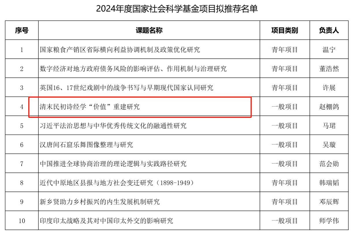 2024年国家社会科学基金项目拟推荐名单公示,我们一个项目获推荐
