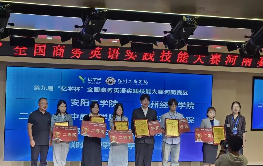 近日,第九届 “亿学杯” 全国商务英语实践技能大赛河南省赛区决赛在郑州工商学院落幕。我们商务英语系两支参赛队伍表现突出,分获省赛二等奖,尽显我们办学实力。