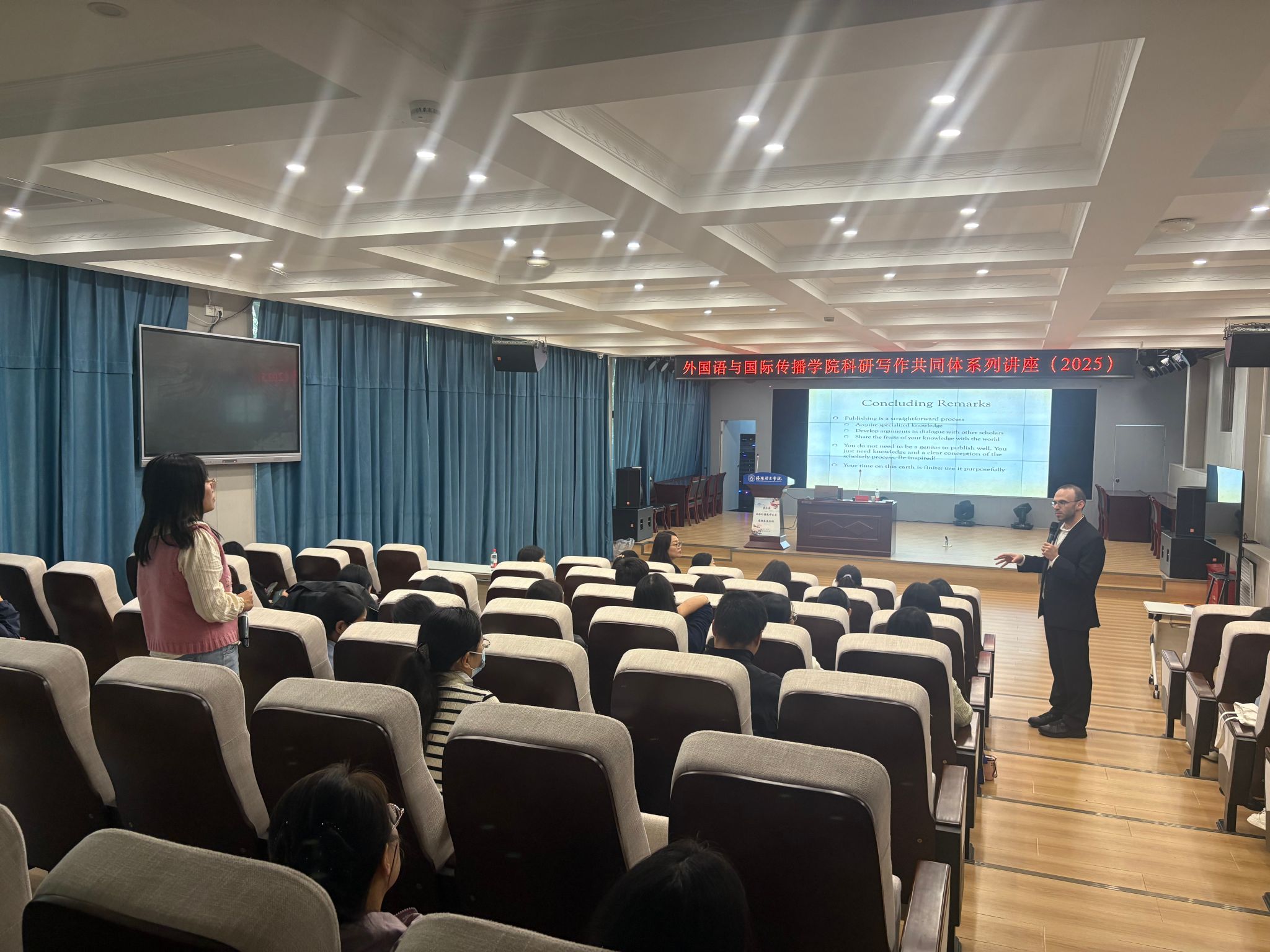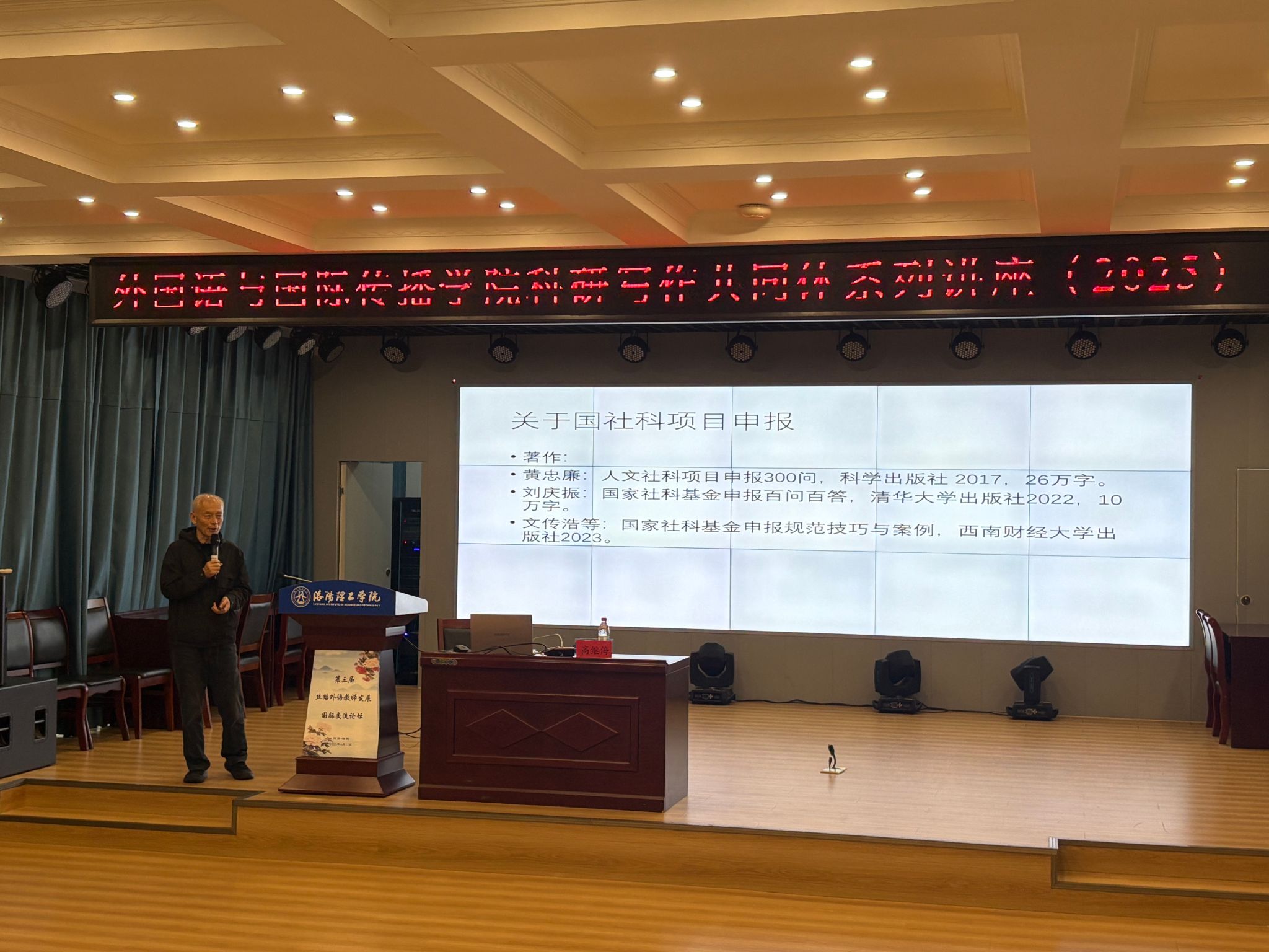 9月23日,外国语与国际传播学院、国际交流合作处邀请河南开封科技传媒学院外语学院名誉院长、博士、二级教授高继海和深圳大学特聘教授Leonard Neidorf为我们教师作了题为“高层次科研基金申请与高水平学术论文发表的策略与艺术”的讲座。本次讲座系外国语与国际传播学院科研写作共同体系列讲座(2025),由易明院长主持。