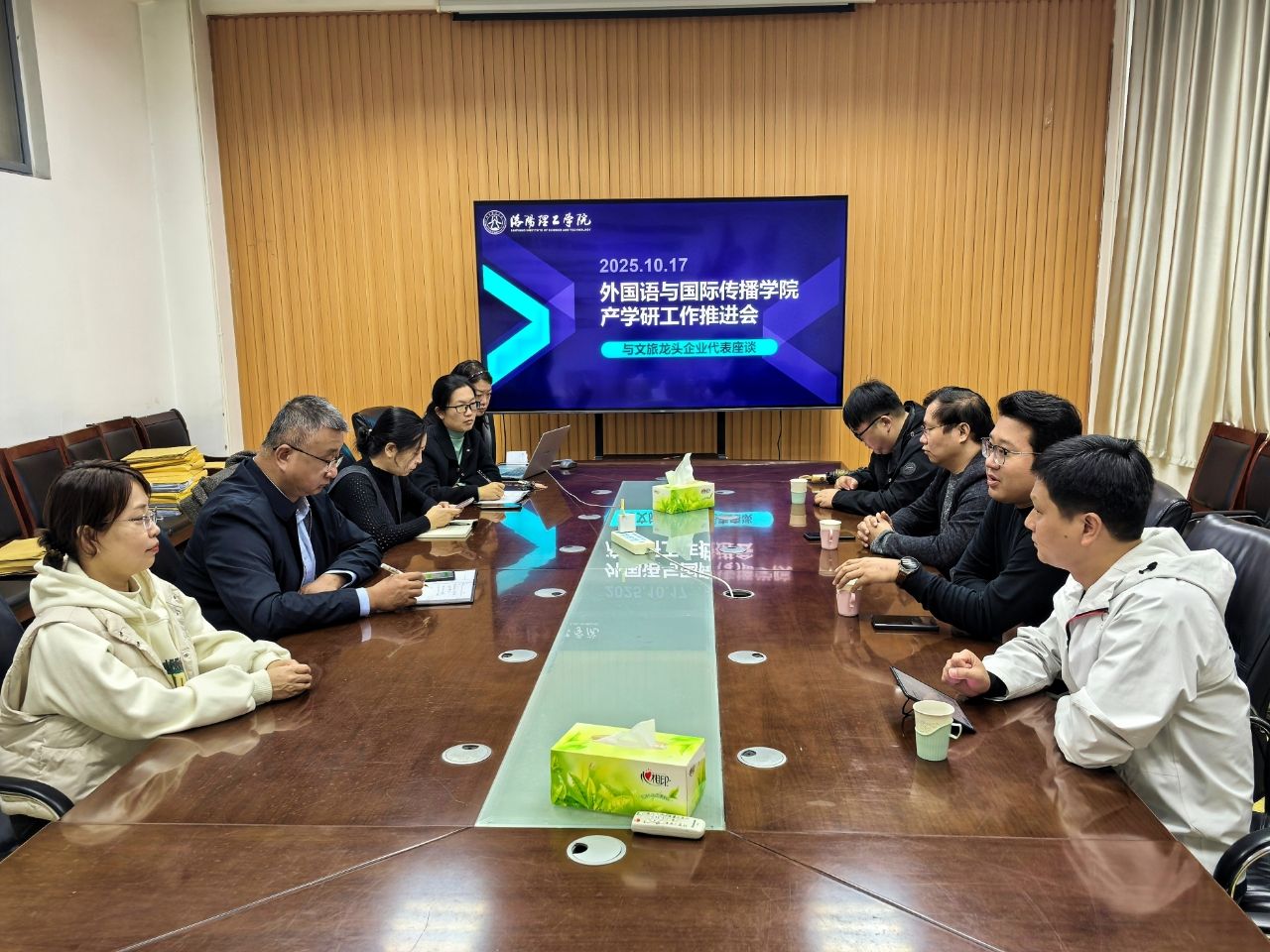 2025年10月17日上午,华邑文旅(洛阳)有限公司创始人刘志伟先生、巨商科技服务有限公司总经理裴智先生、副总经理裴星慧先生、洛府文化总经理 池帅群先生等企业专家到访我们,与我们领导等进行了深入交流。双方围绕文旅文创出海、跨境电商、产学研合作等议题展开探讨,并就未来合作方向达成多项共识。